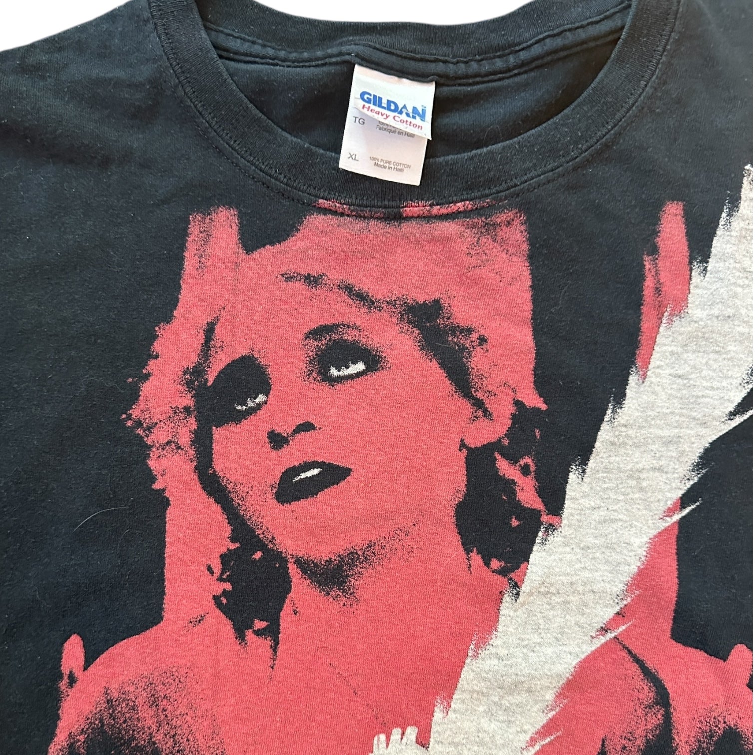 An early 2000s Gildan with perfect fade. Measurements in photos. True color in front and neck shots, not measurement ...